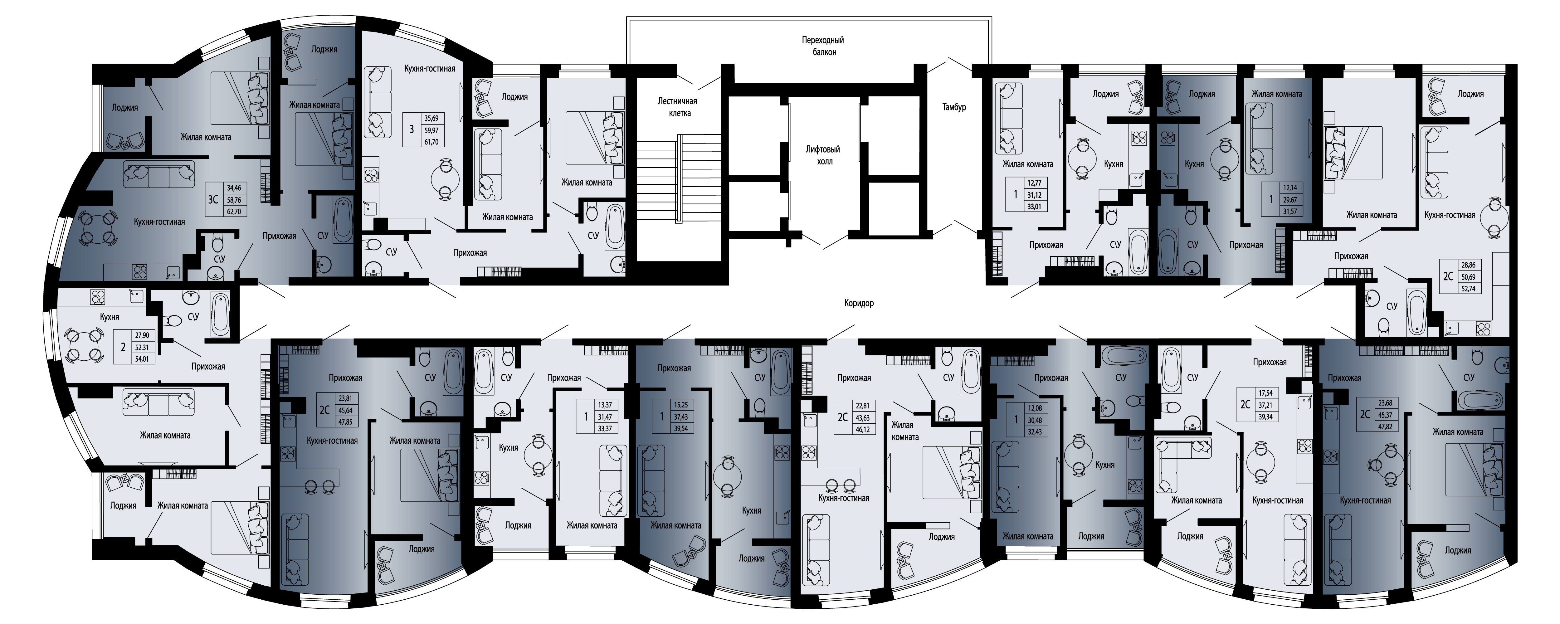 Квартира этаж 22, площадь 31.69 м2