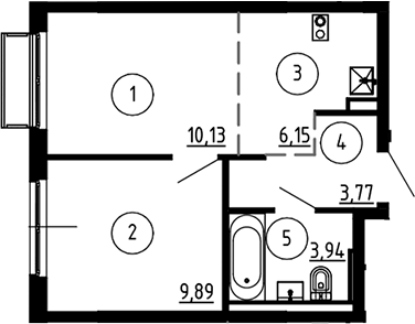 Квартира этаж 3, площадь 33.88 м2