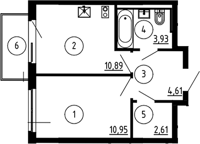 Квартира этаж 6, площадь 33.94 м2