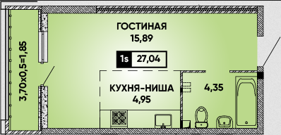 Общая площадь: 27.04м2