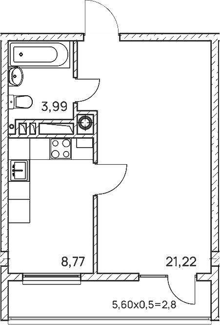 Квартира этаж 1, площадь 36.78 м2