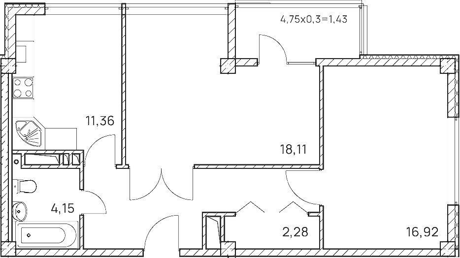 Квартира этаж 1, площадь 65.74 м2