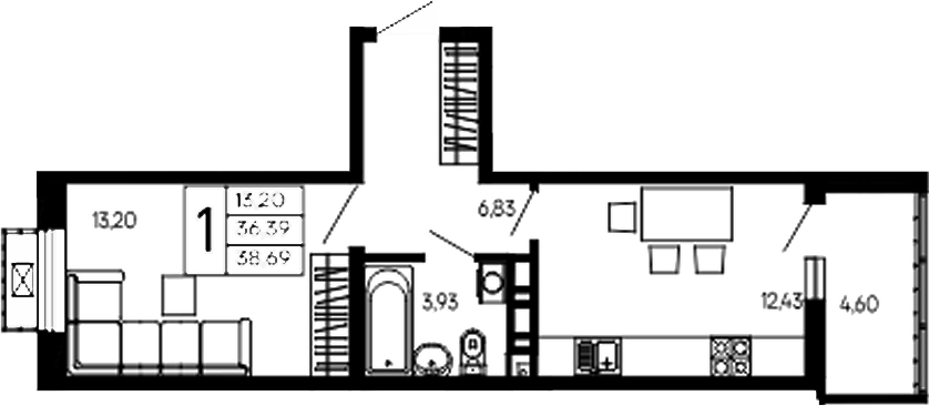 Квартира этаж 13, площадь 38.69 м2