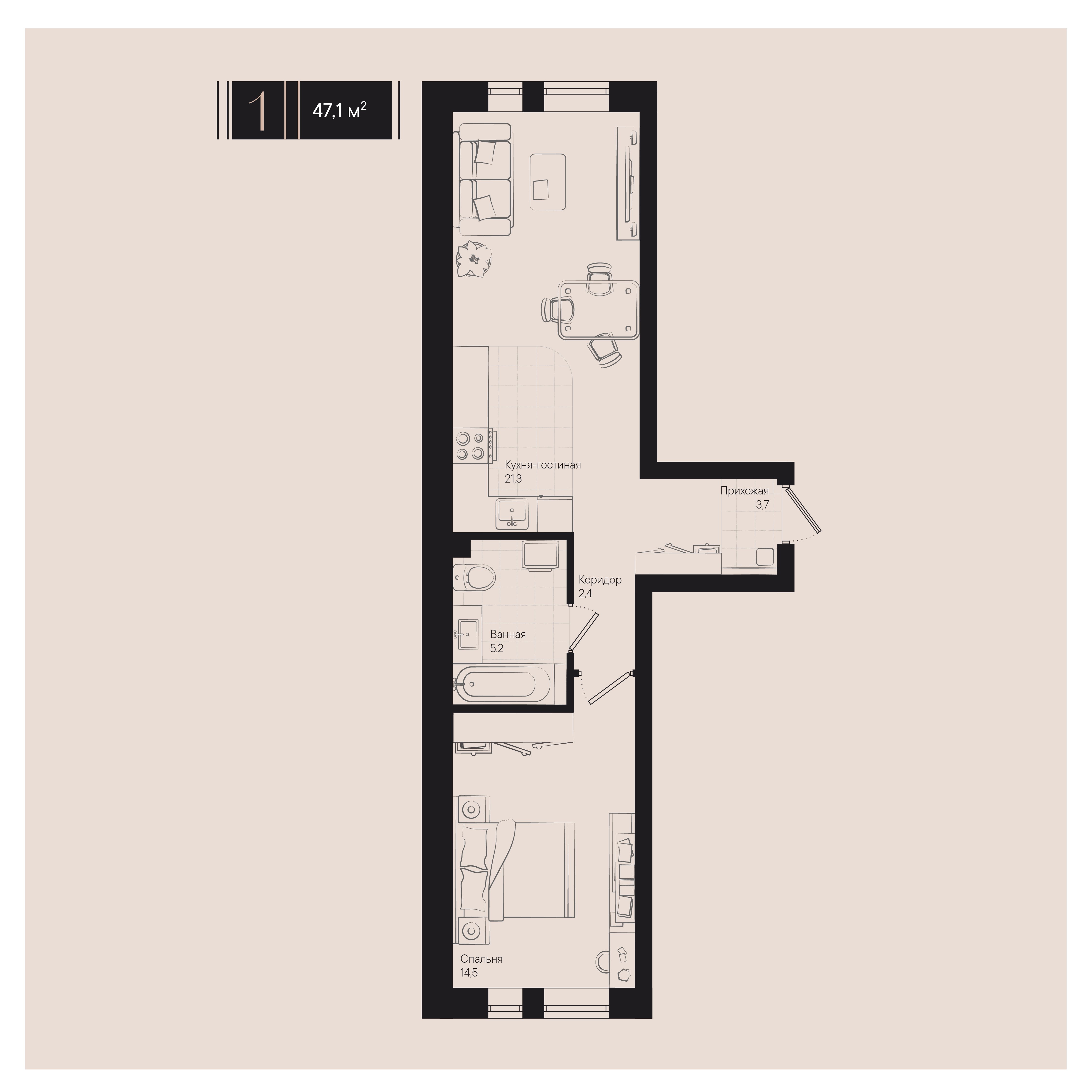 Общая площадь: 47.10м2