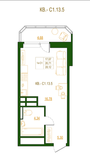 Квартира этаж 15, площадь 28.12 м2