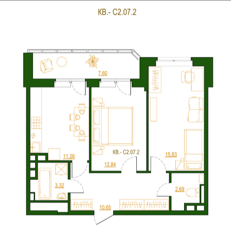 Высота потолков: 2.7м