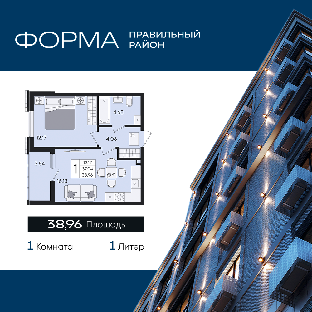 Общая площадь: 38.96м2