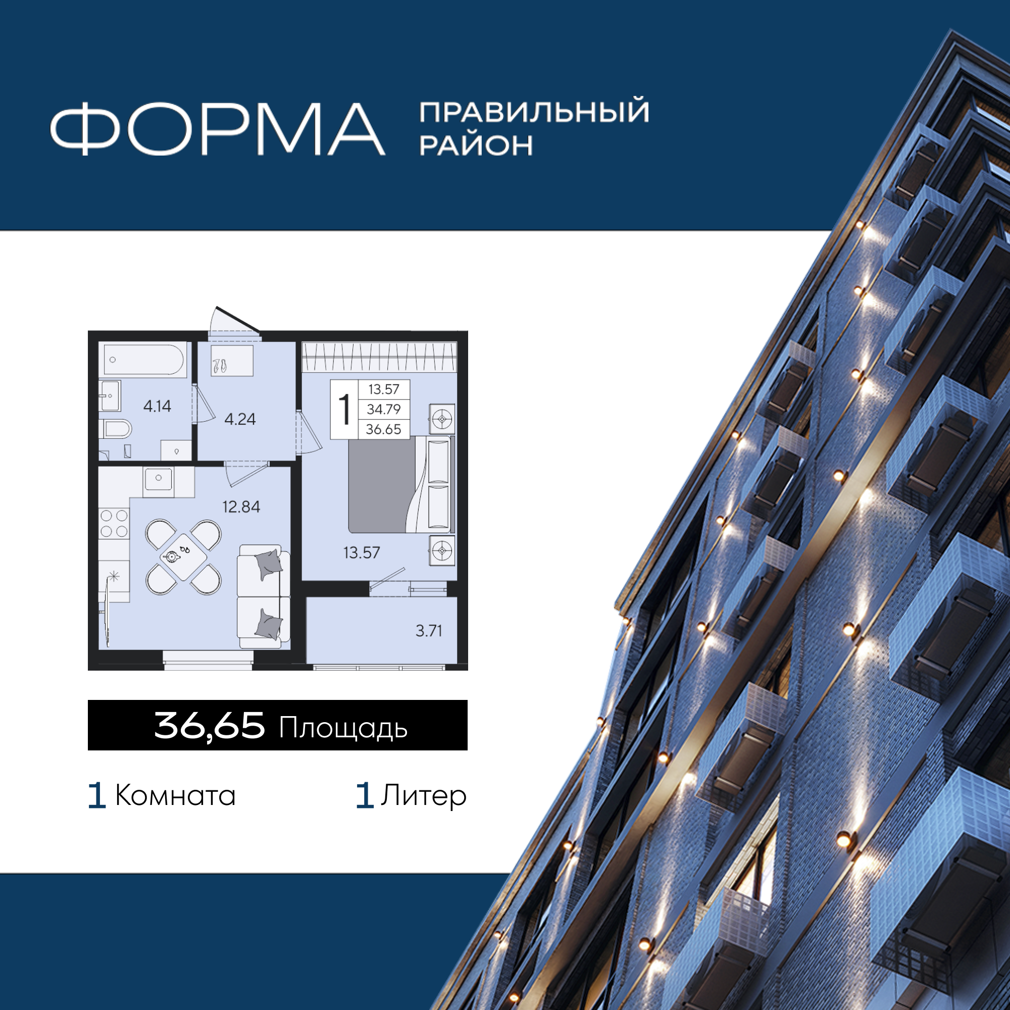 Общая площадь: 36.65м2