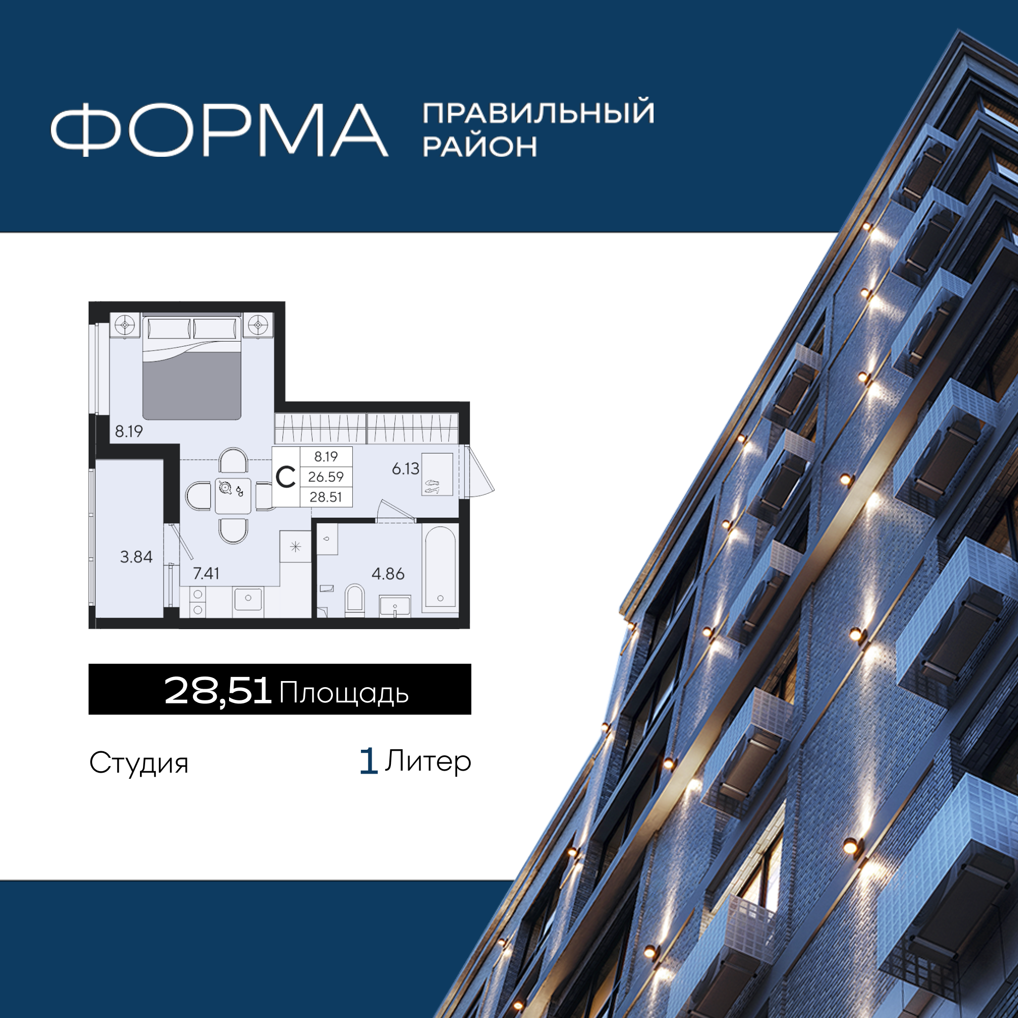 Общая площадь: 28.51м2