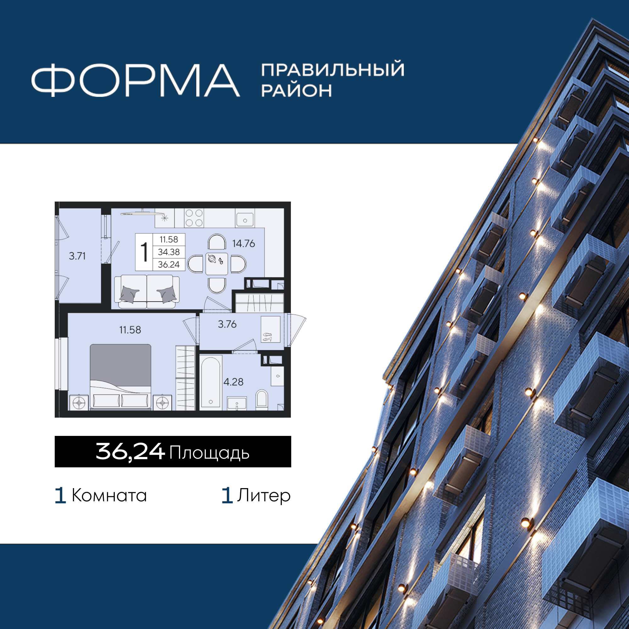 Общая площадь: 36.24м2