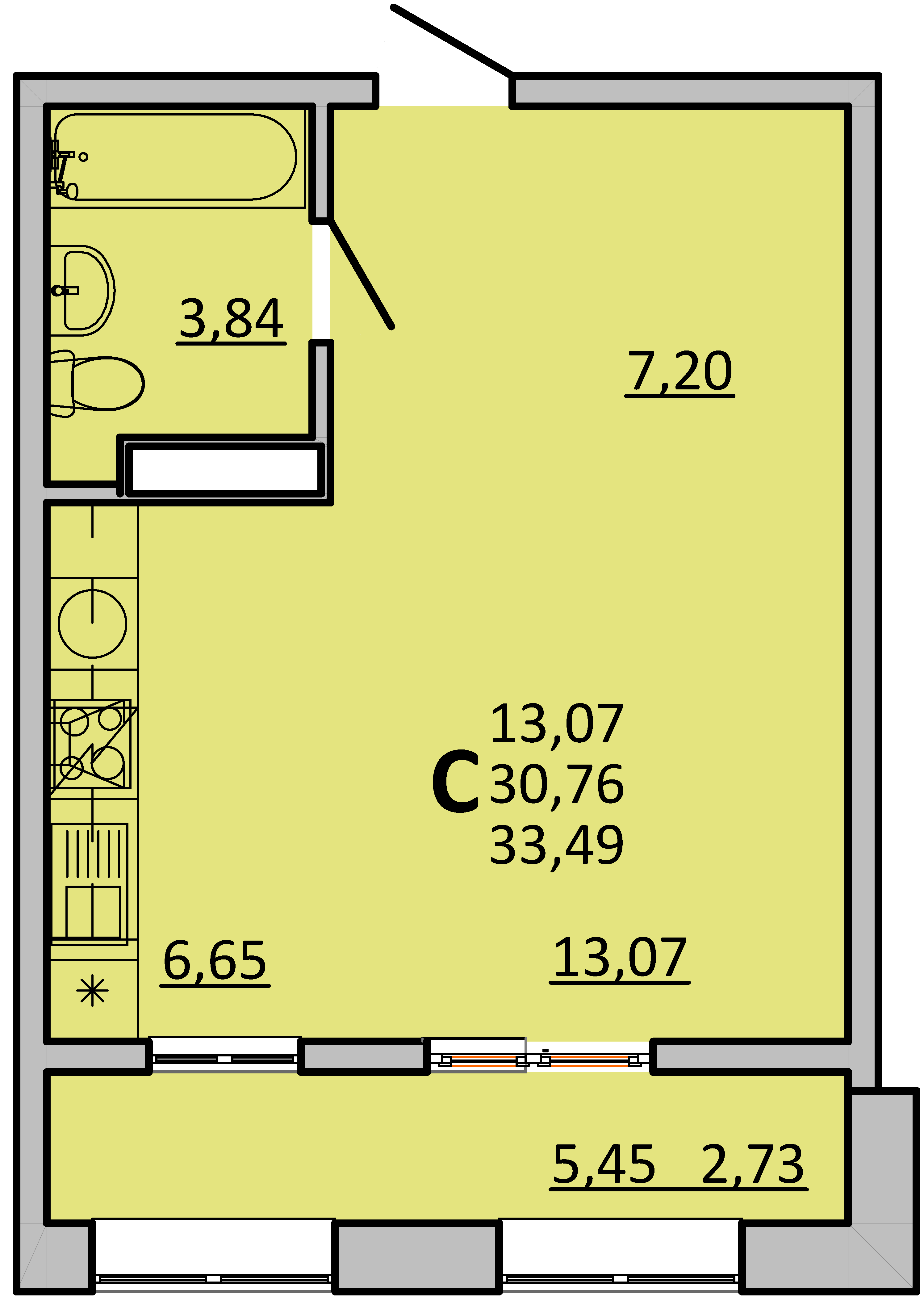 Общая площадь: 33.49м2