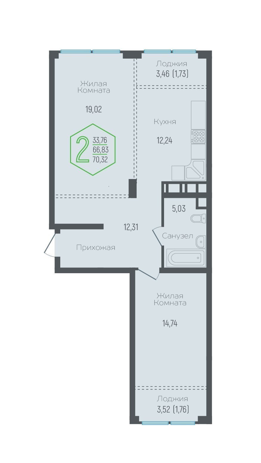 Квартира этаж 18, площадь 66.83 м2