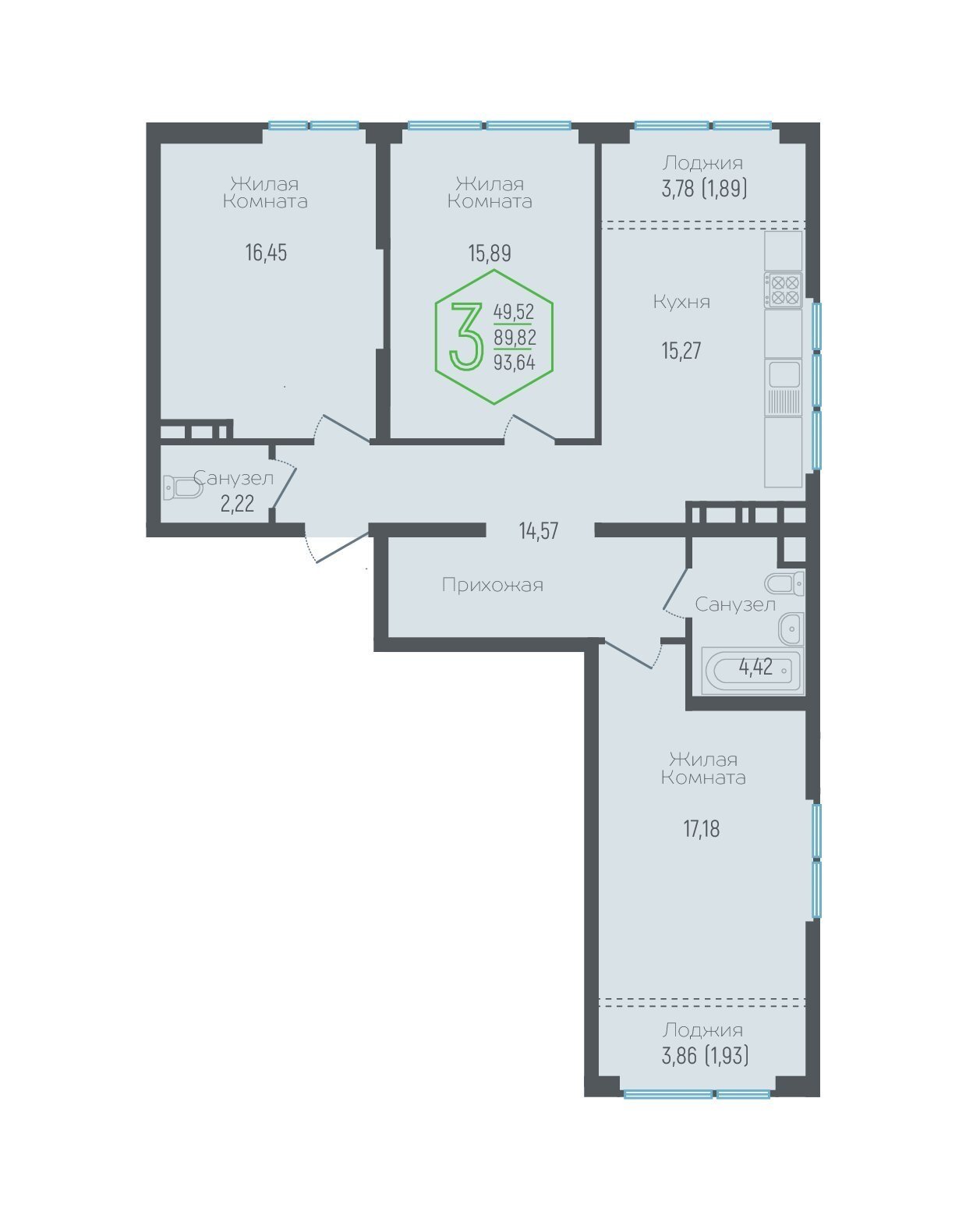 Общая площадь: 89.82м2
