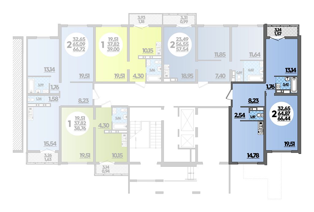 Квартира этаж 1, площадь 66.44 м2
