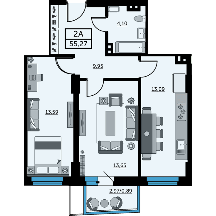 Общая площадь: 55.49м2