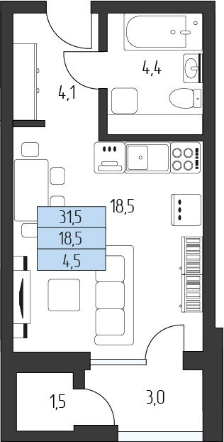 Квартира этаж 3, площадь 28.95 м2