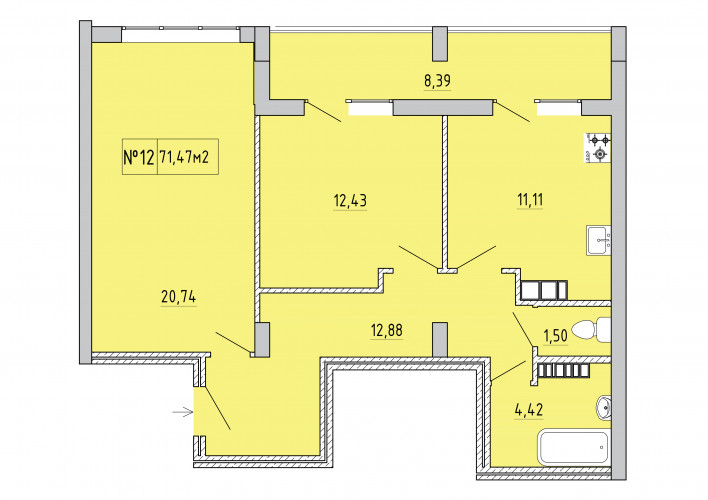 Общая площадь: 71.47м2