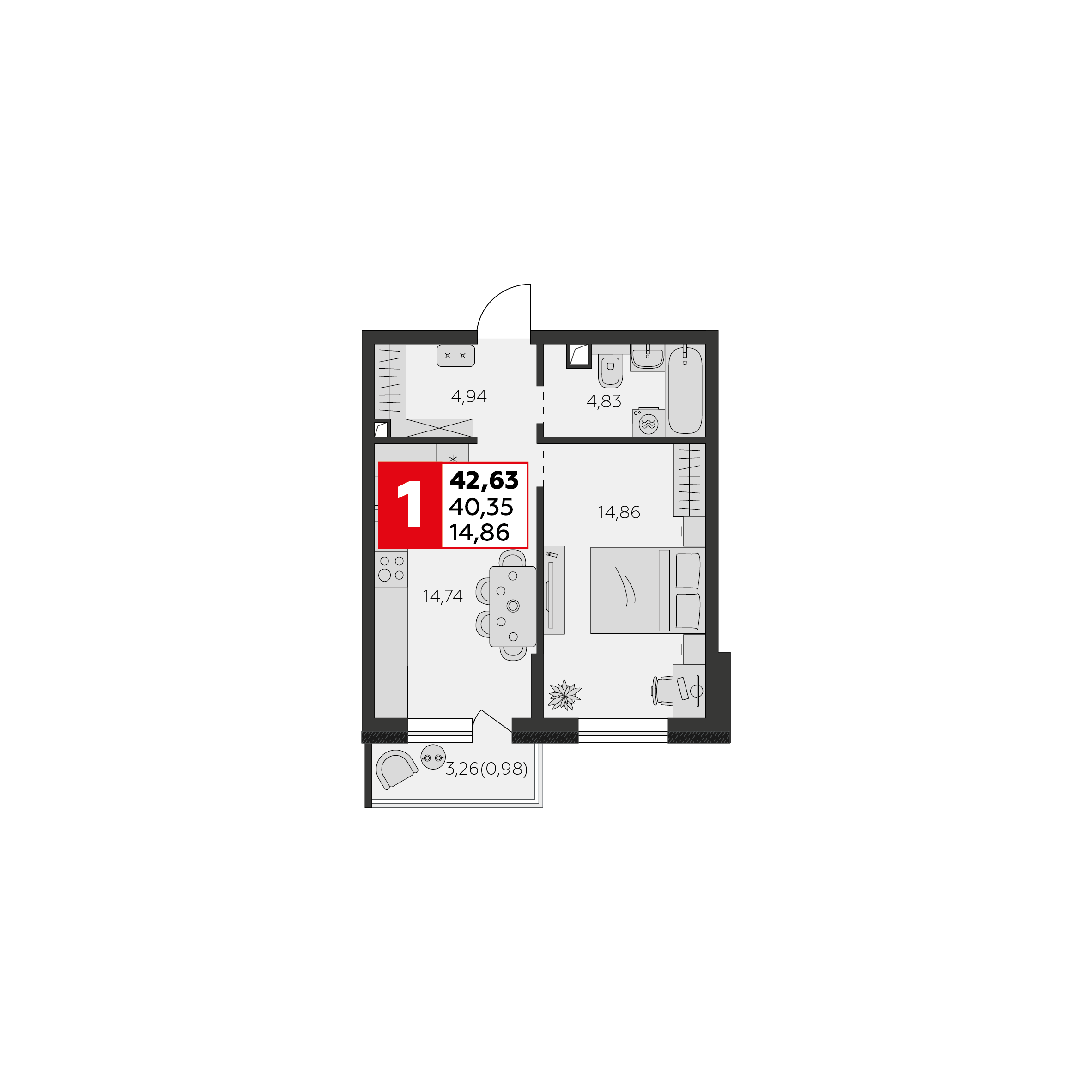 Общая площадь: 40.35м2