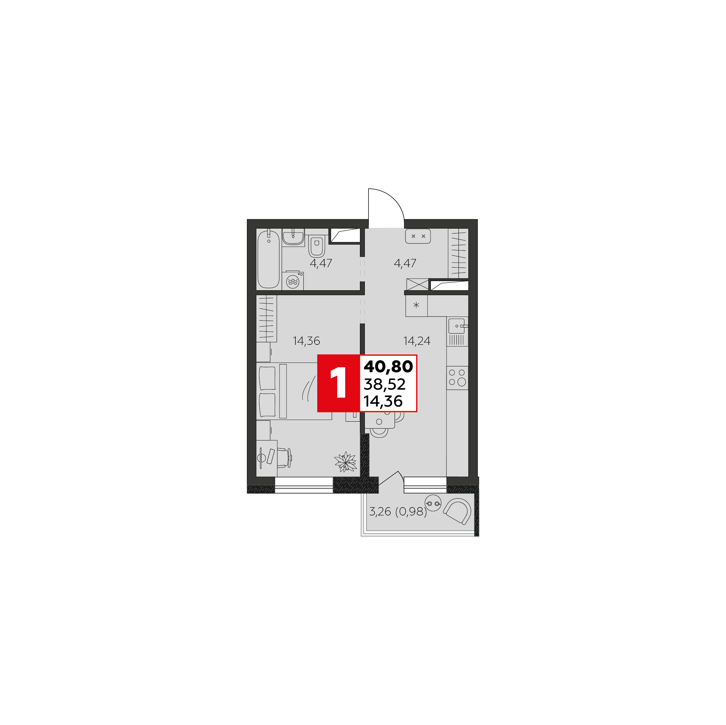 Общая площадь: 38.52м2