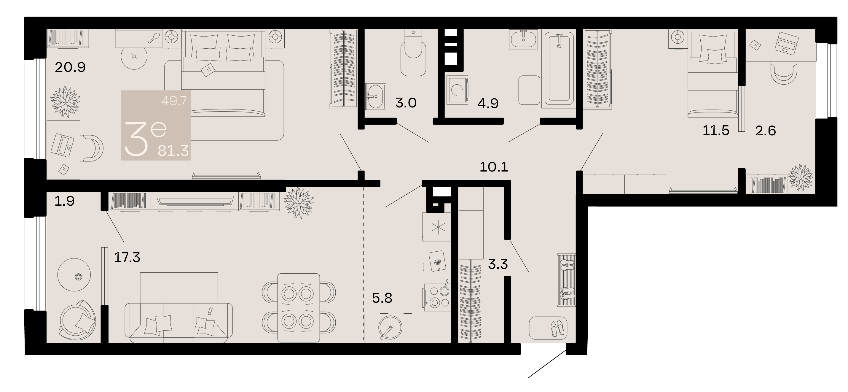 Общая площадь: 81.30м2