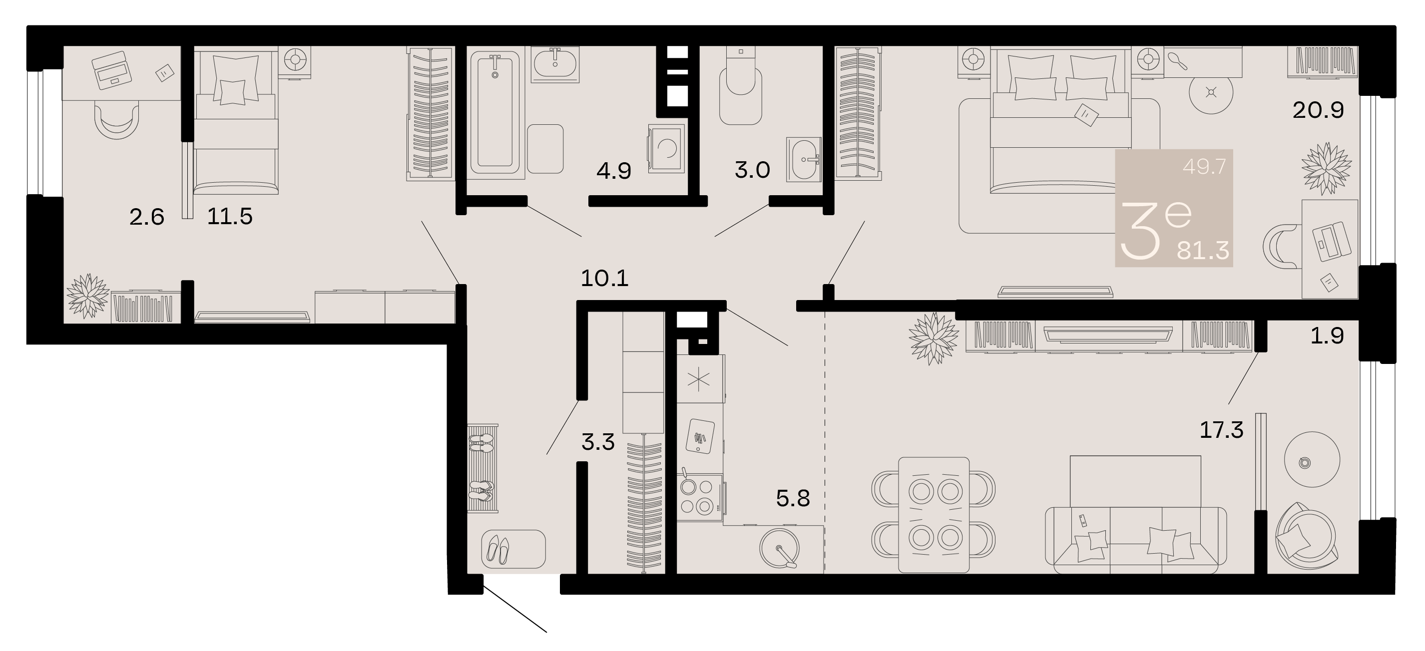 Квартира этаж 7, площадь 81.30 м2