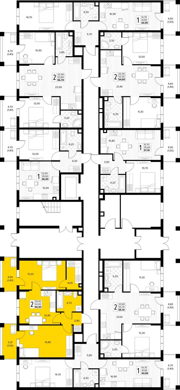 Квартира этаж 1, площадь 56.90 м2