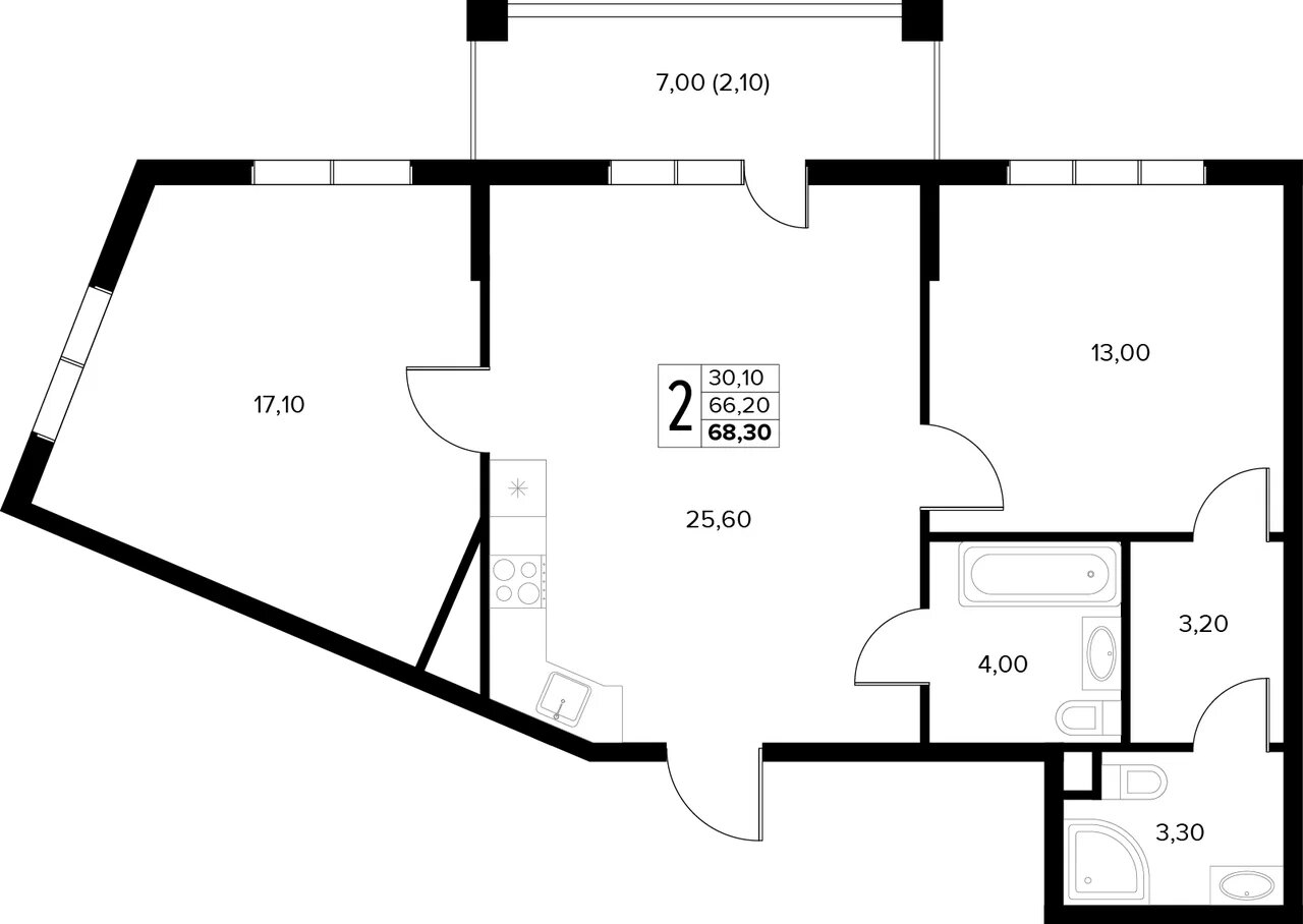 Общая площадь: 68.30м2