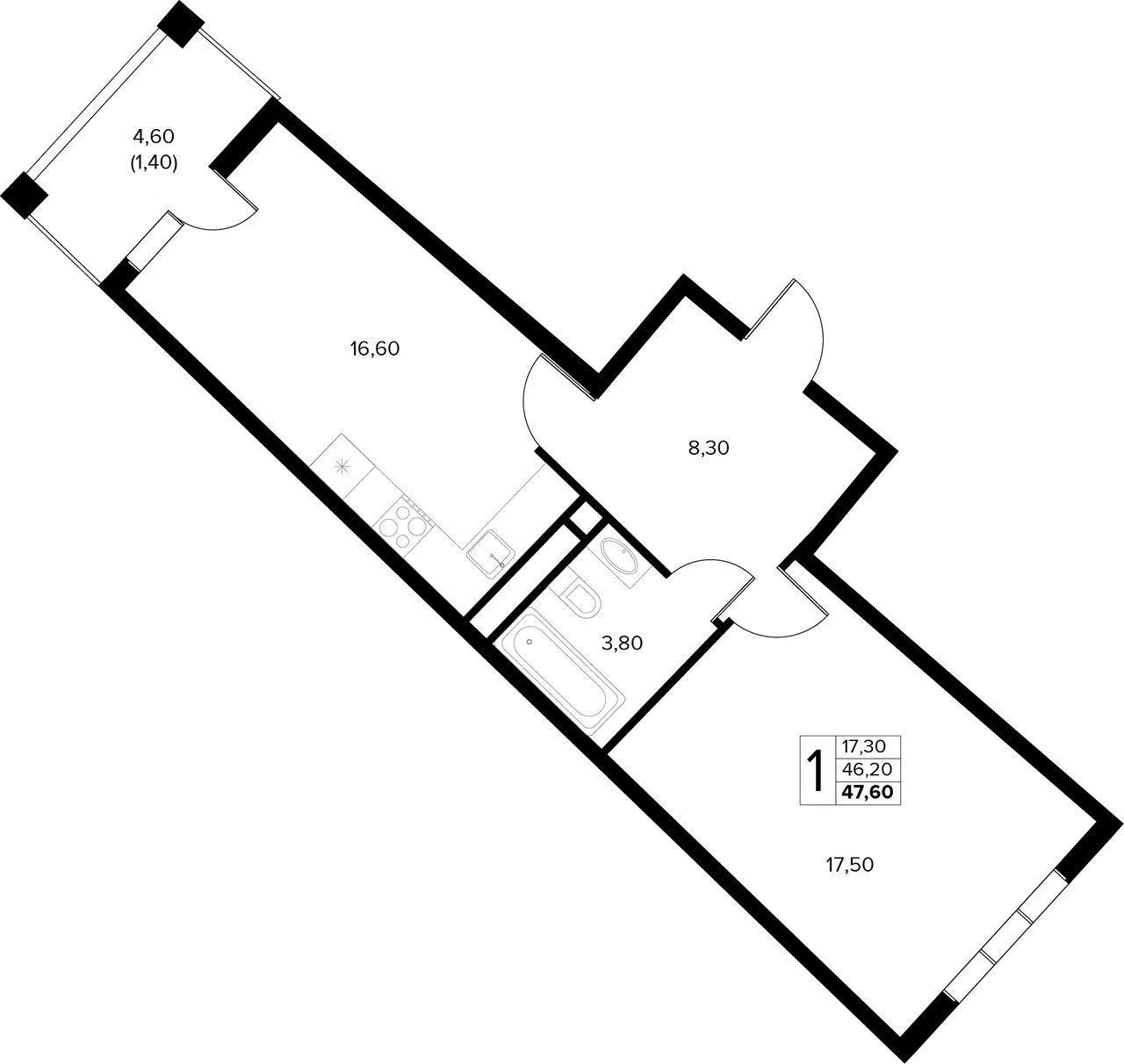 Общая площадь: 47.60м2