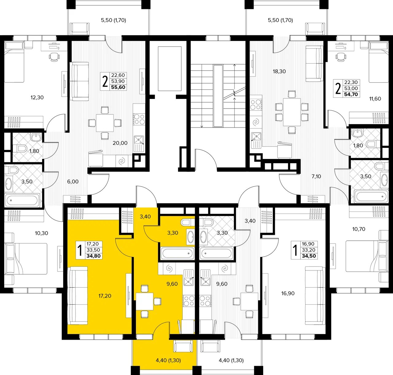 Квартира этаж 5, площадь 34.80 м2
