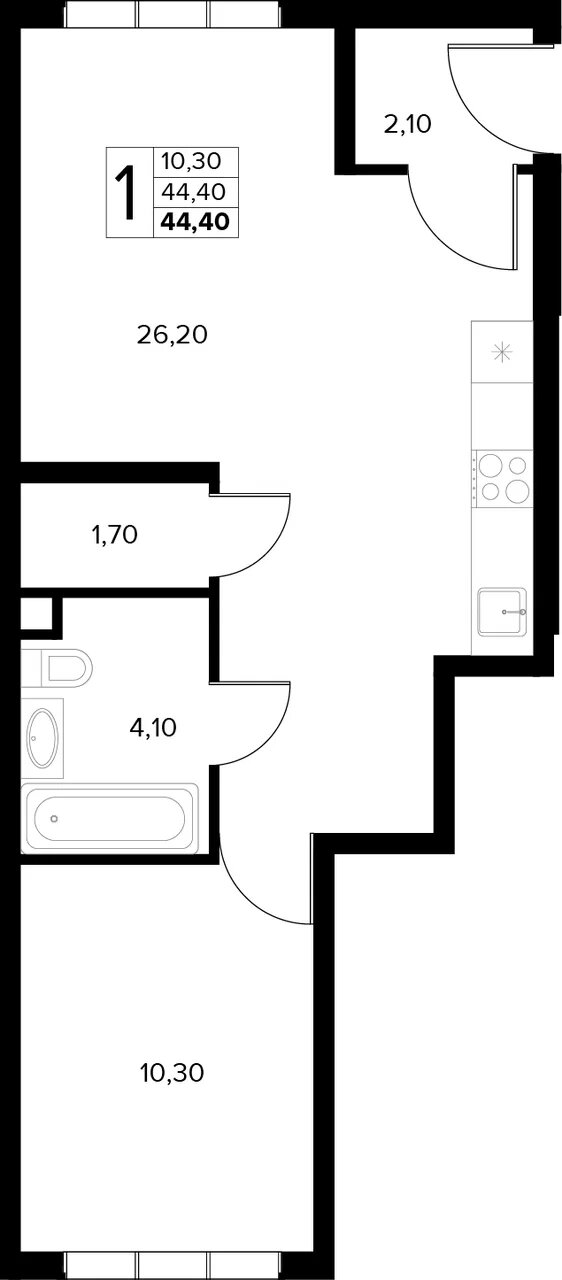 Квартира этаж 1, площадь 44.40 м2