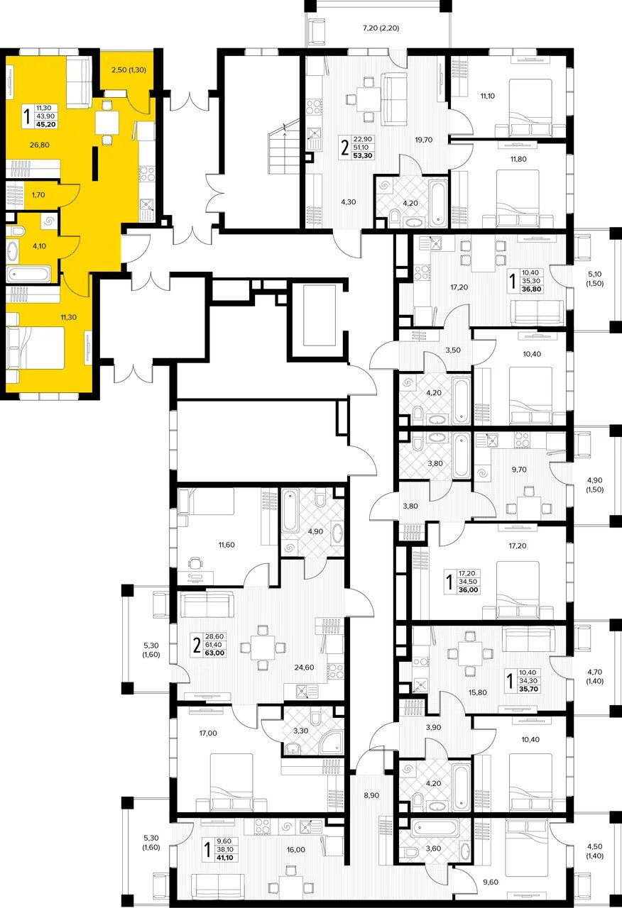 Квартира этаж 1, площадь 45.20 м2