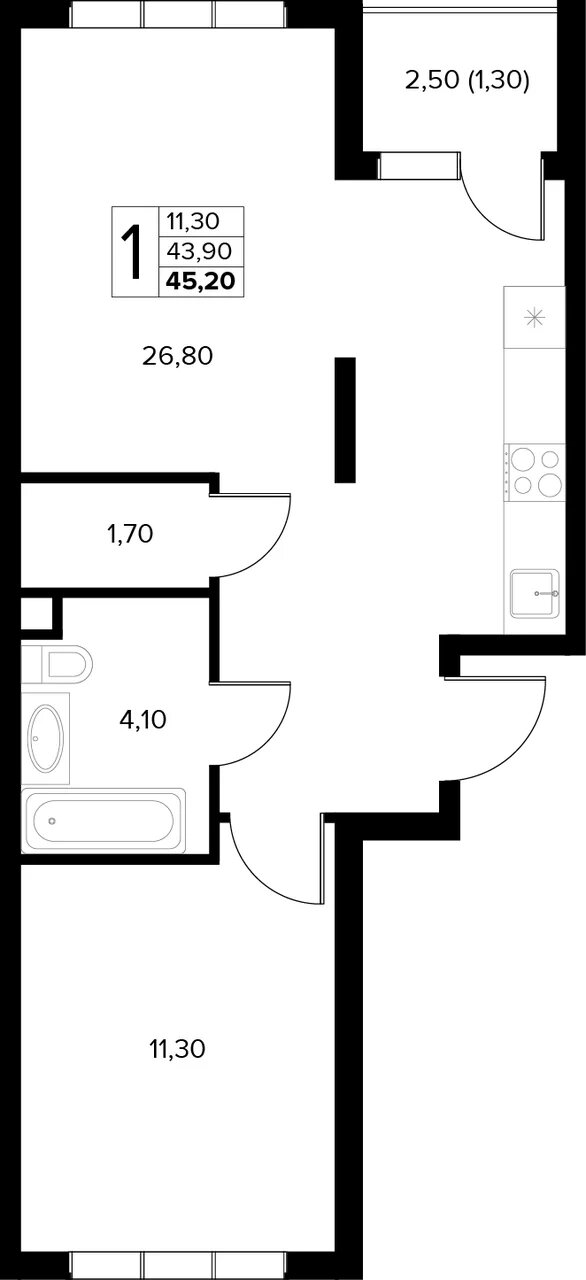 Общая площадь: 45.20м2