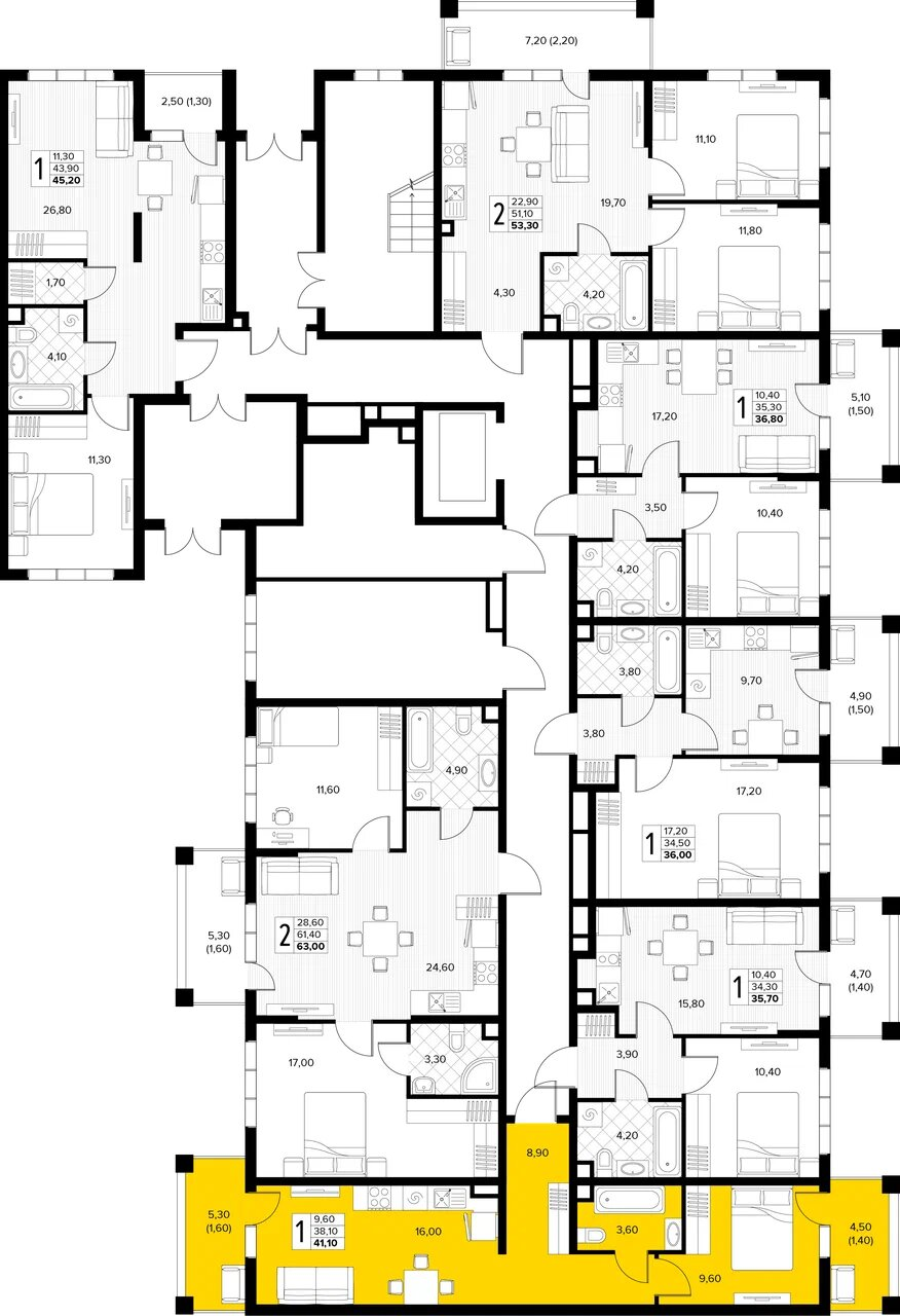 Квартира этаж 1, площадь 41.10 м2