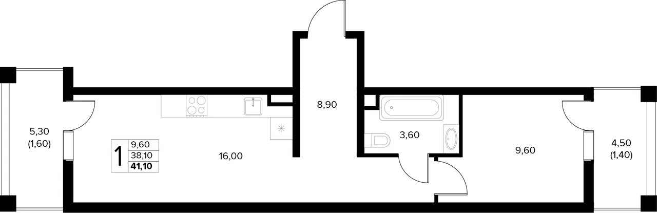 Общая площадь: 41.10м2