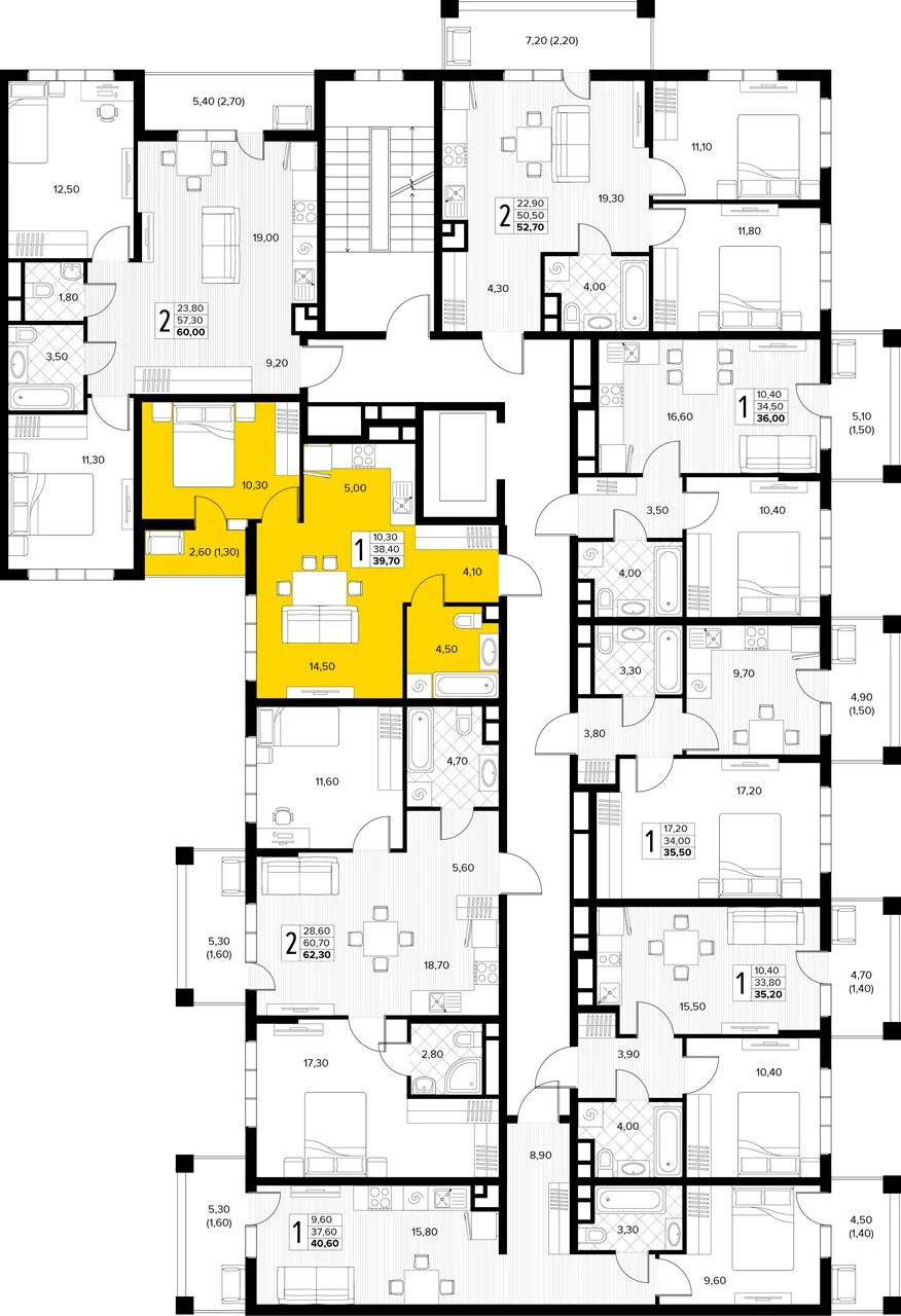Квартира этаж 2, площадь 39.70 м2