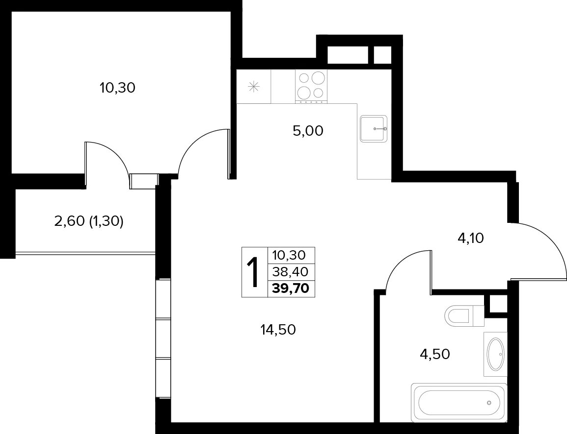 Общая площадь: 39.70м2