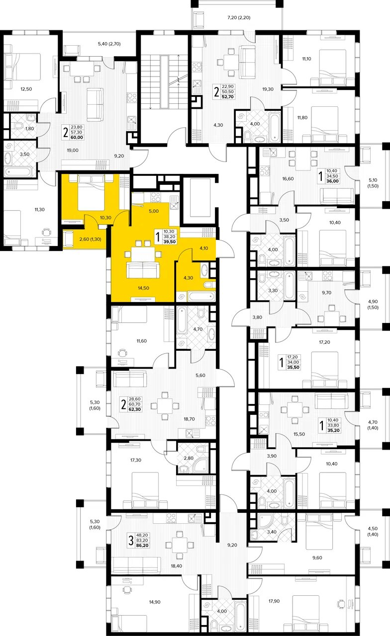 Квартира этаж 6, площадь 39.50 м2
