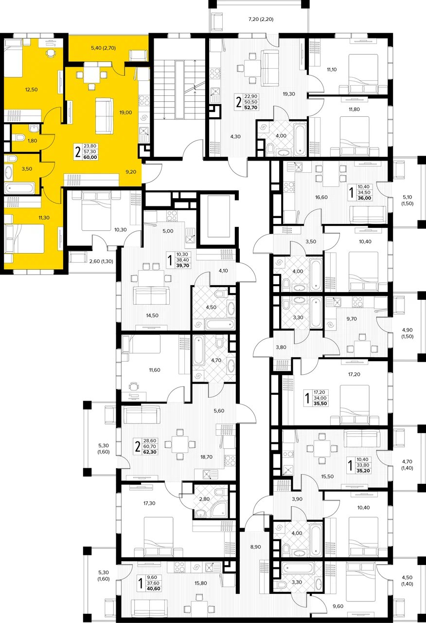 Квартира этаж 7, площадь 60.00 м2
