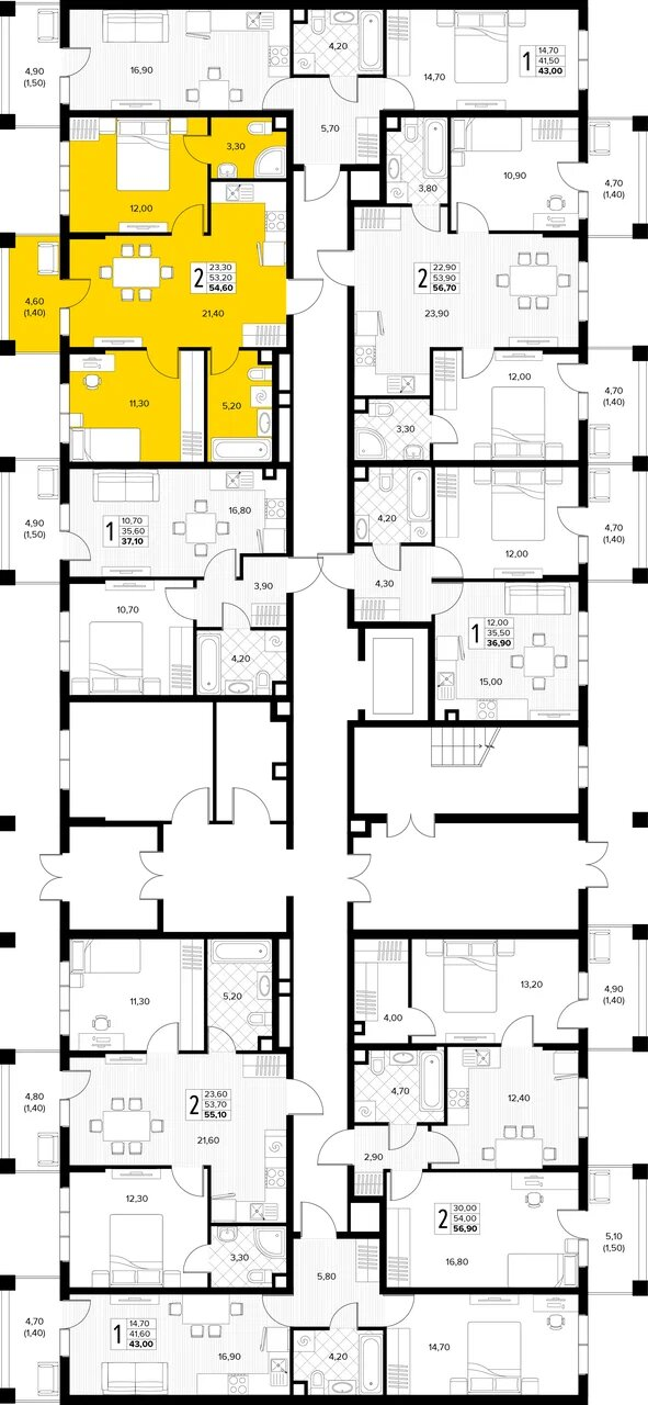 Квартира этаж 1, площадь 54.60 м2