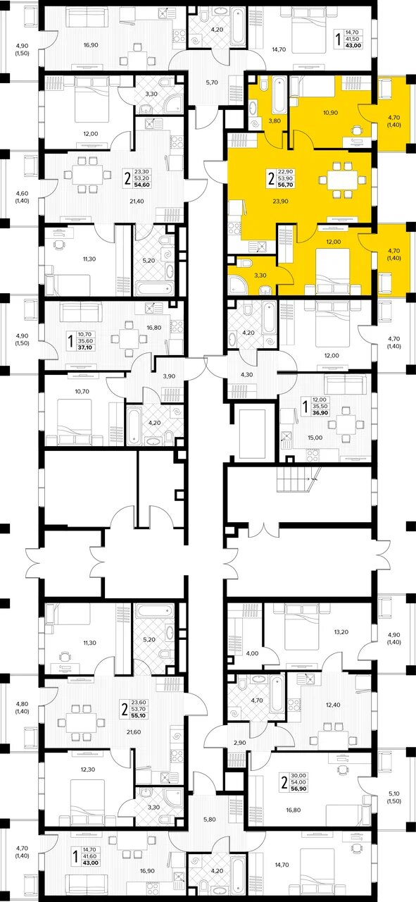 Квартира этаж 1, площадь 56.70 м2