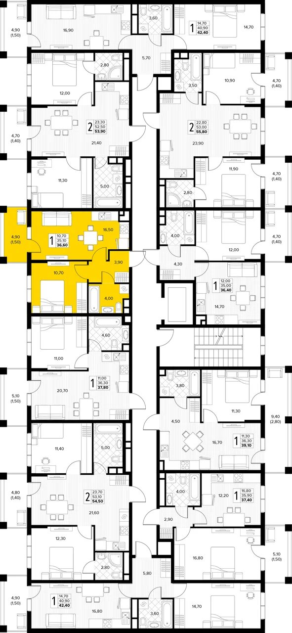 Квартира этаж 3, площадь 36.60 м2