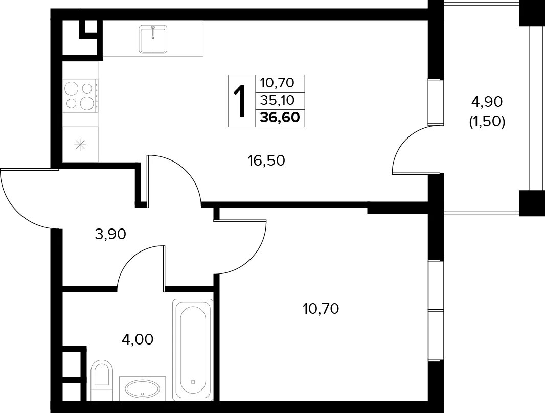 Общая площадь: 36.60м2