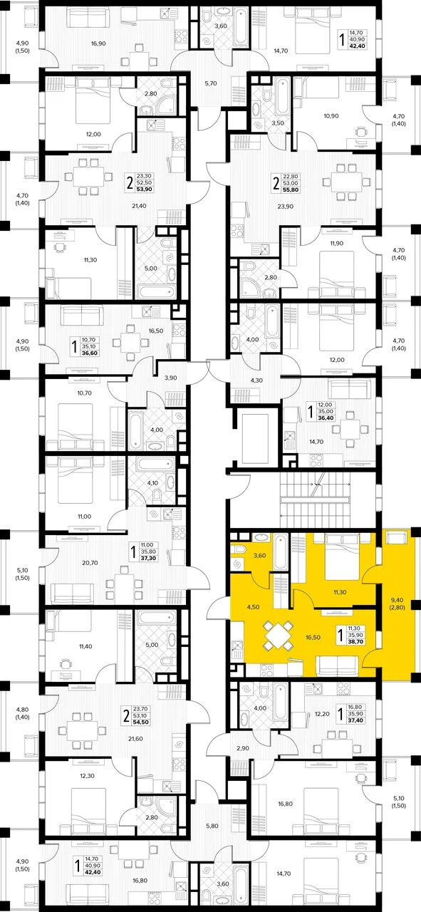 Квартира этаж 7, площадь 38.70 м2
