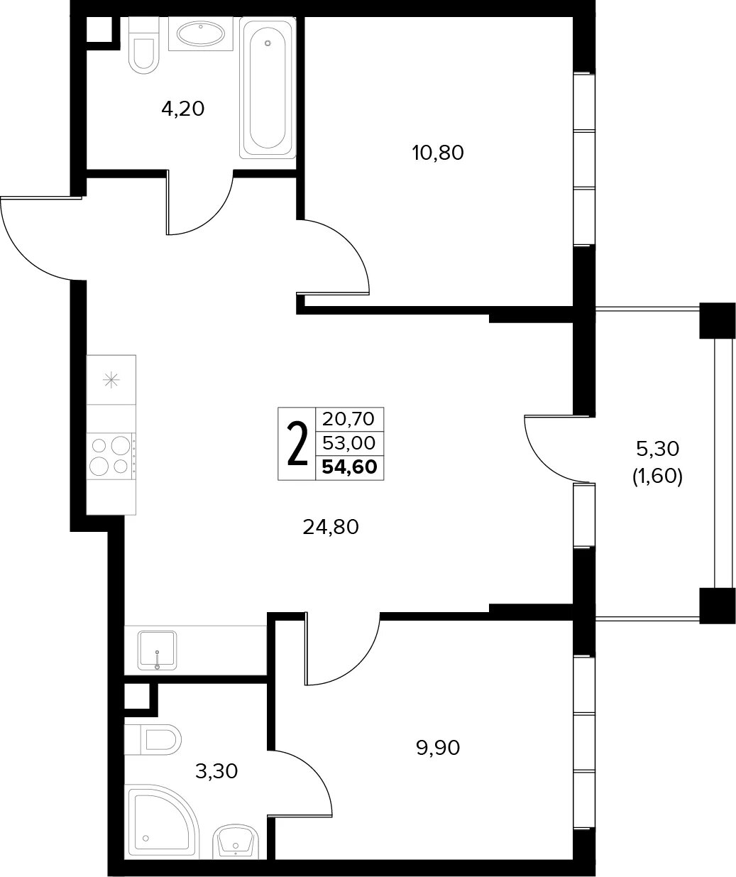 Общая площадь: 54.60м2