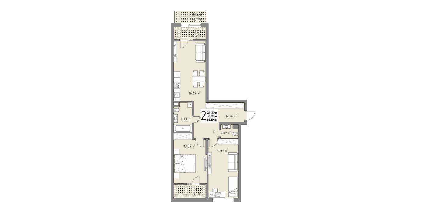 Общая площадь: 68.54м2