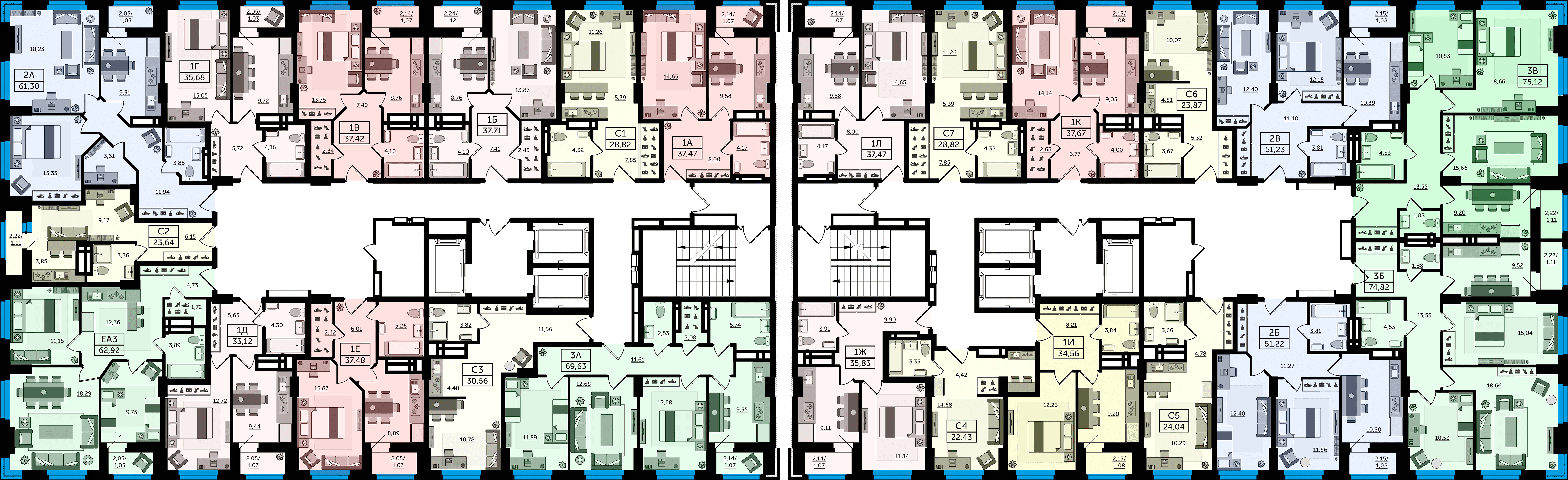 Квартира этаж 18, площадь 74.82 м2