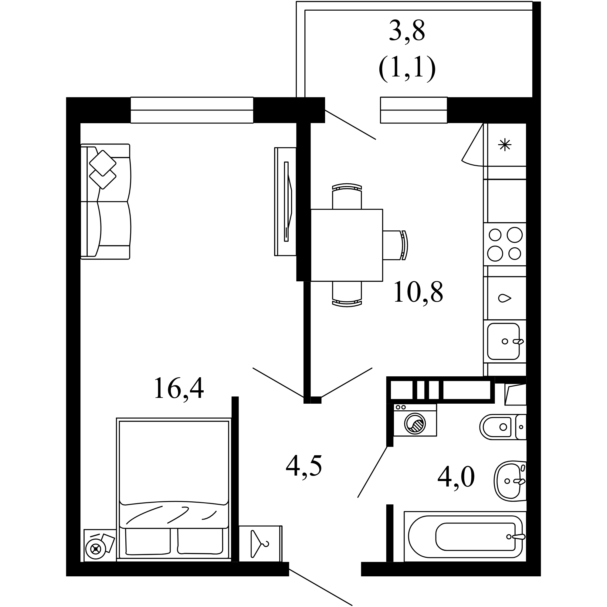 Общая площадь: 36.80м2