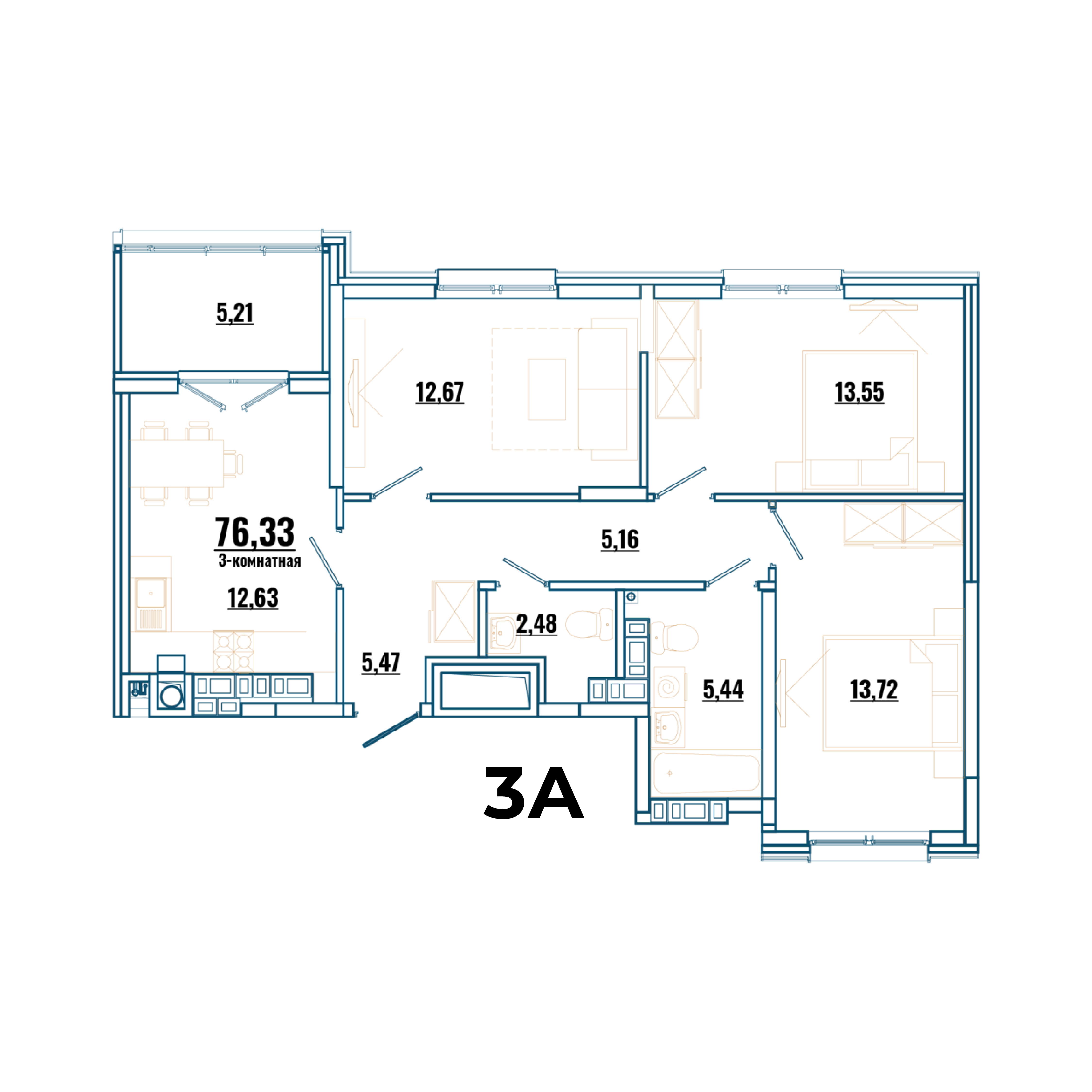 Общая площадь: 76.33м2