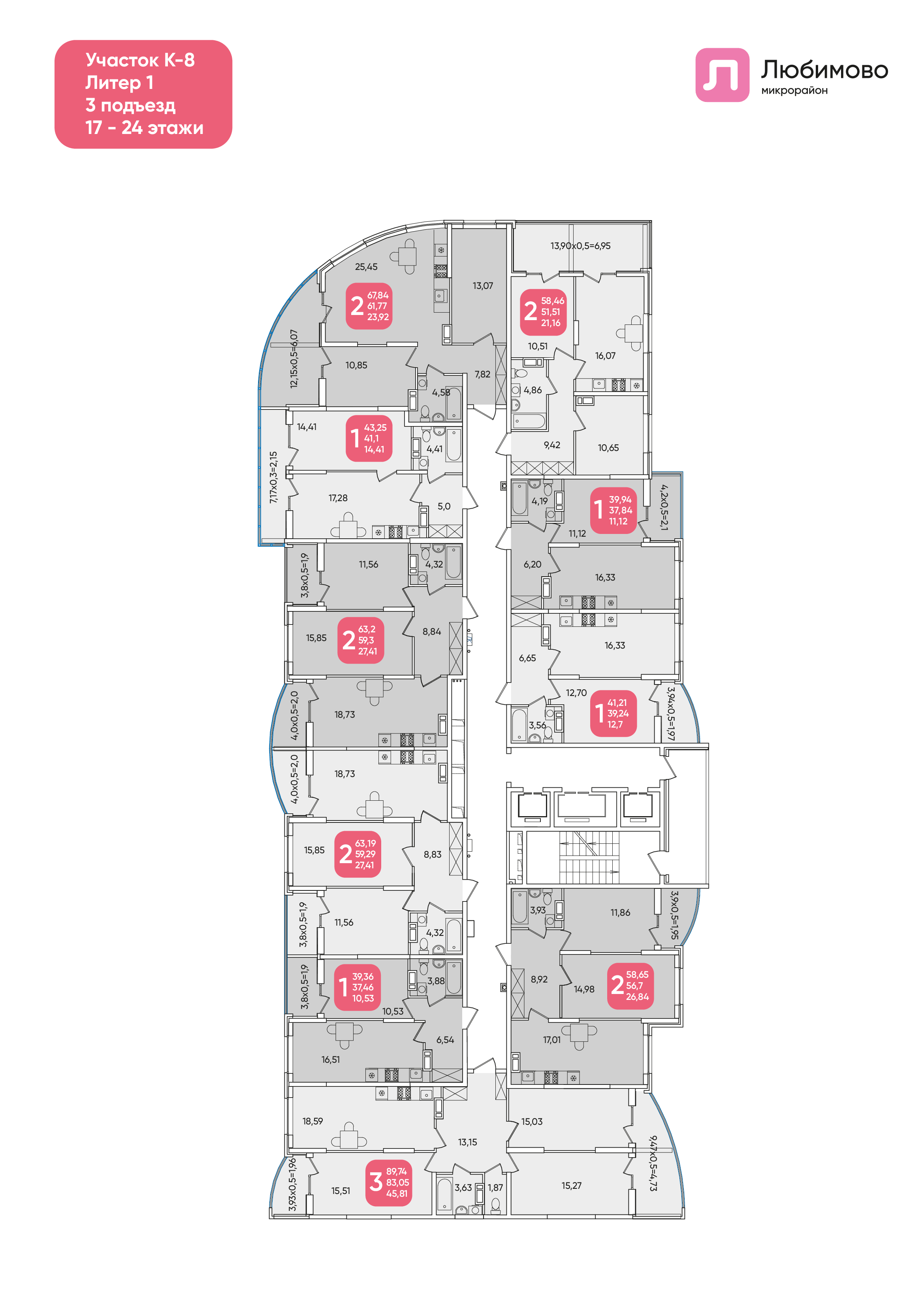 Квартира этаж 22, площадь 89.74 м2