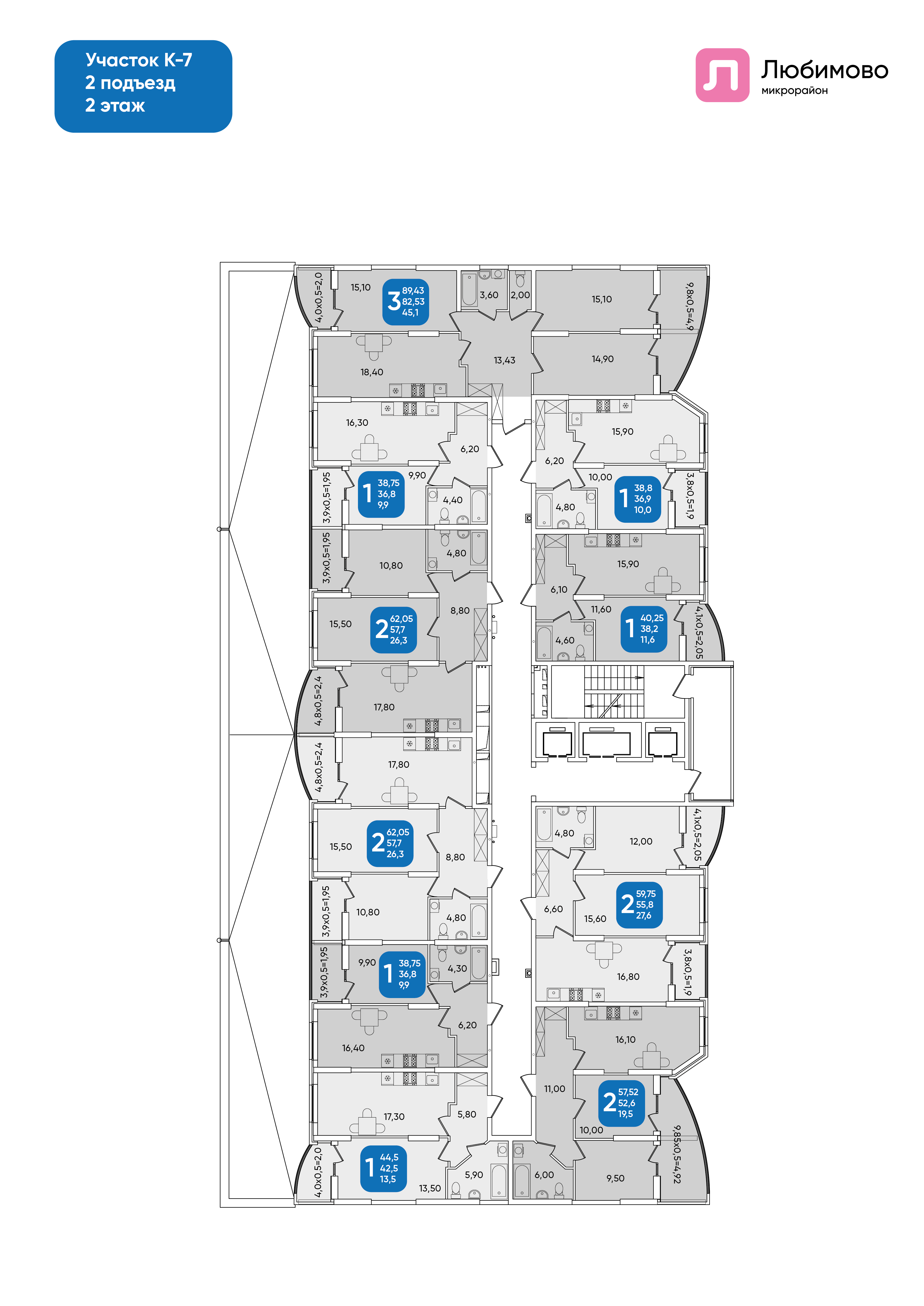 Квартира этаж 2, площадь 62.05 м2